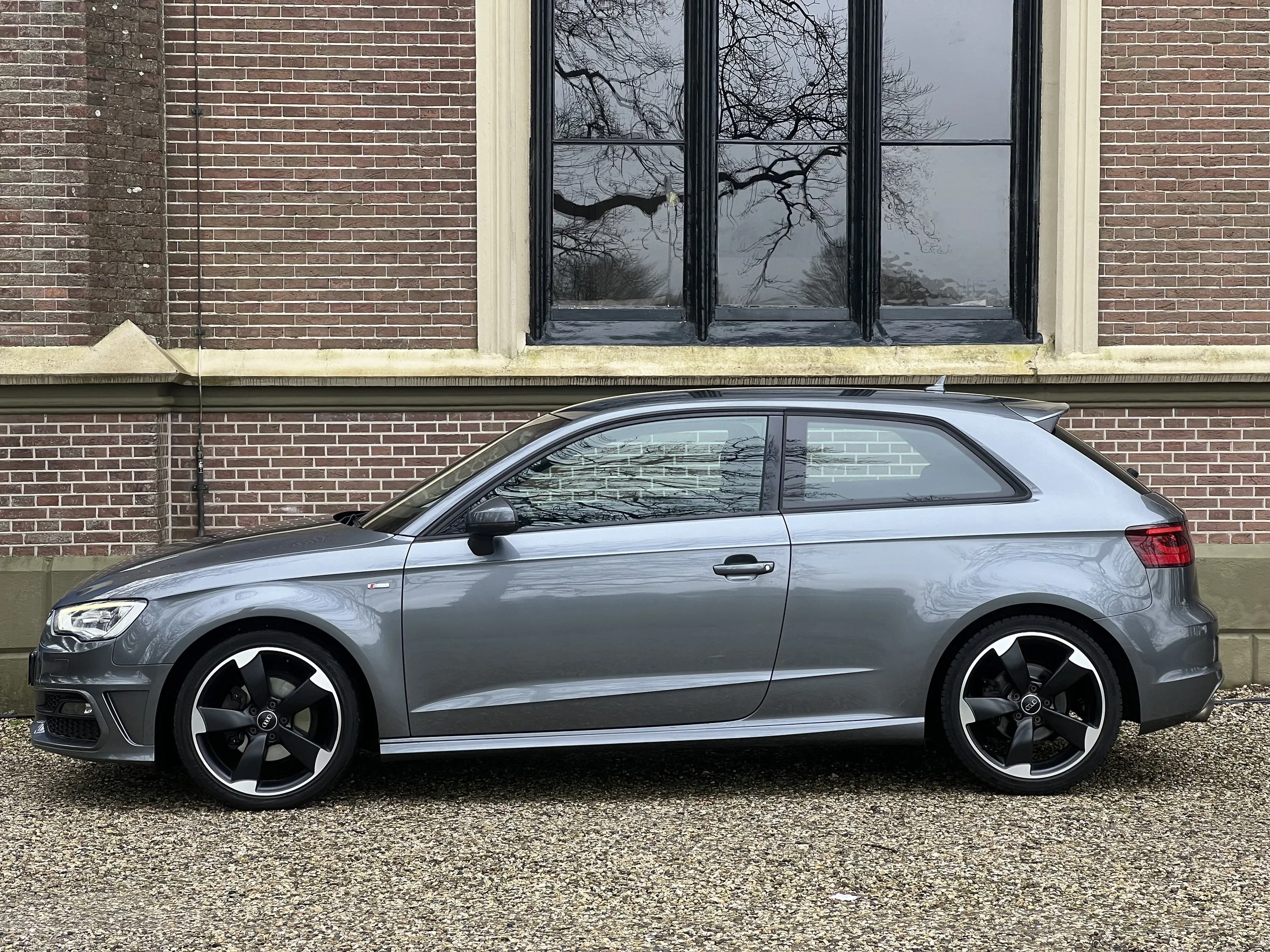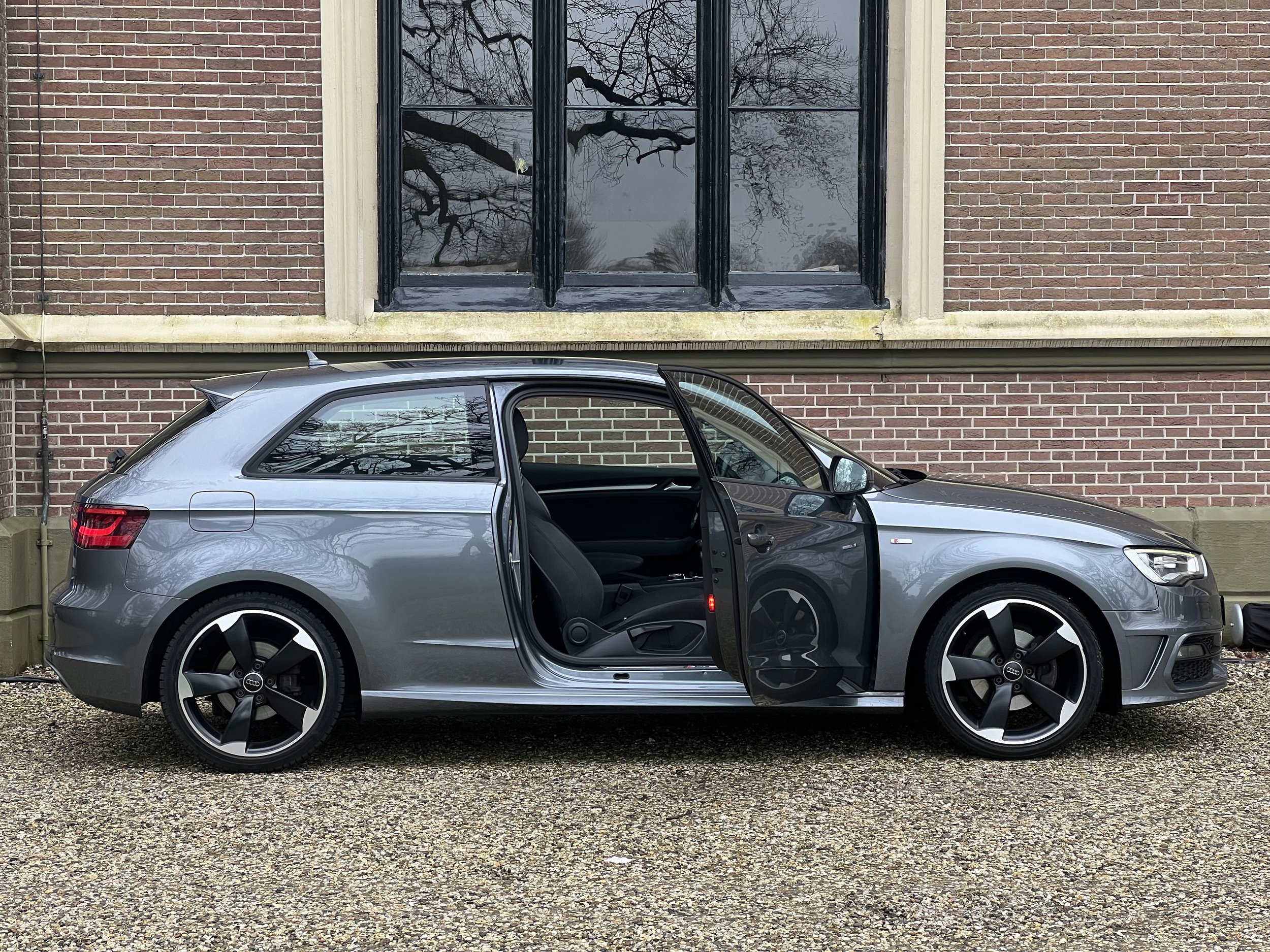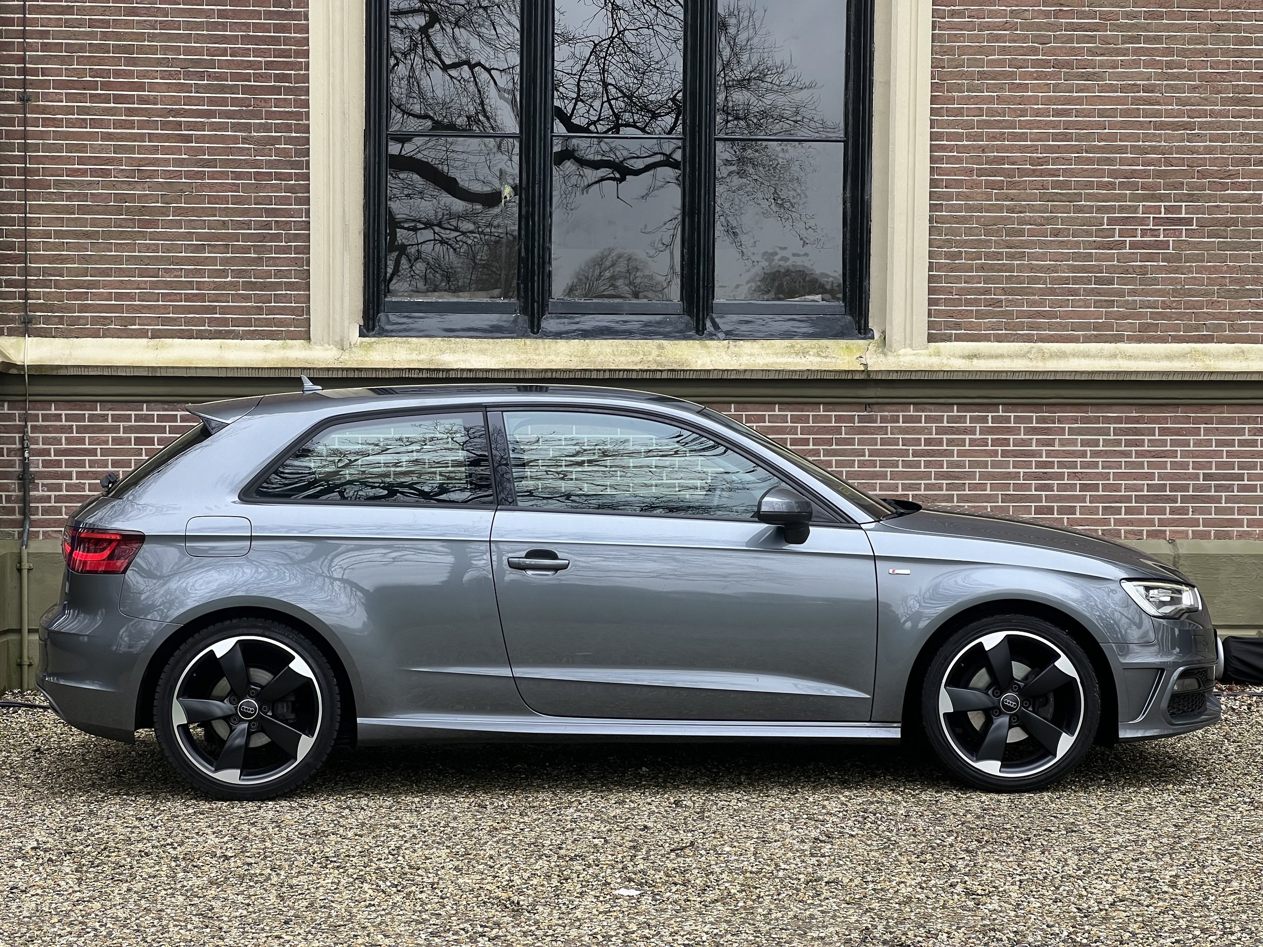 De 3-deurs uitvoering zorgt voor een extra sportieve uitvoering. De lijnen van de auto lopen mooier door en geven de A3 een coupé-achtige uitstraling. De metallic grijze lak en rotor-velgen maken deze auto helemaal af.