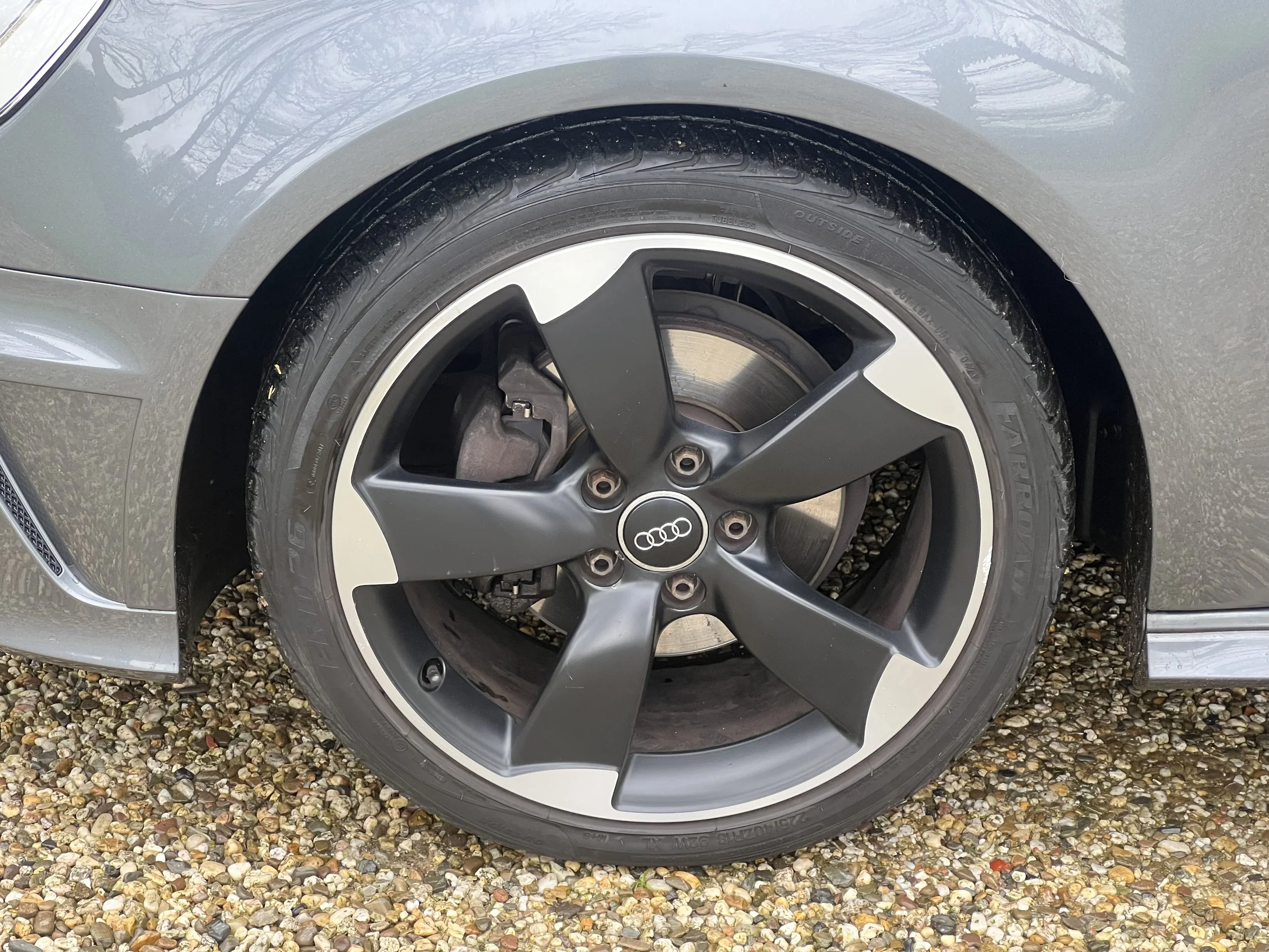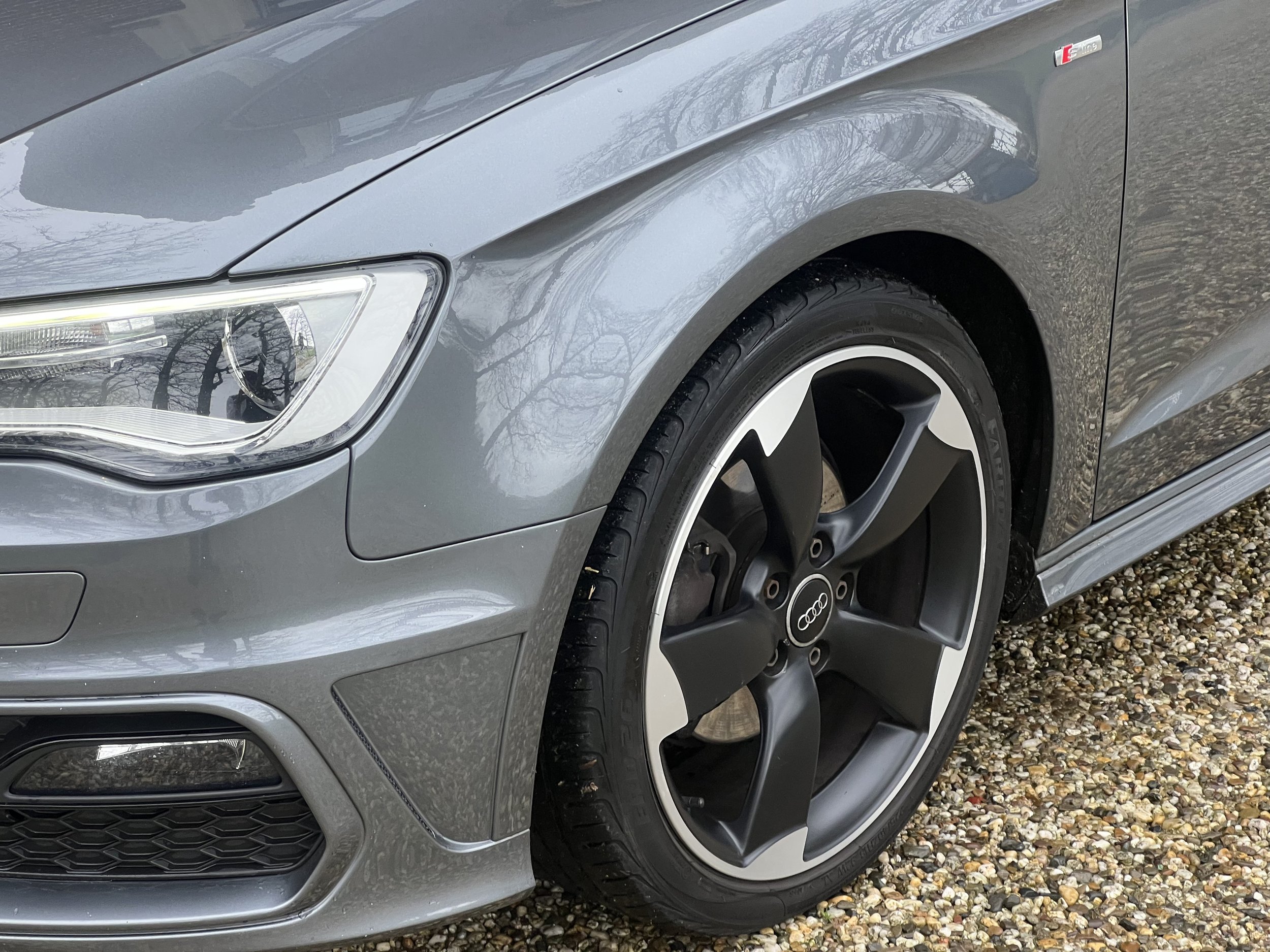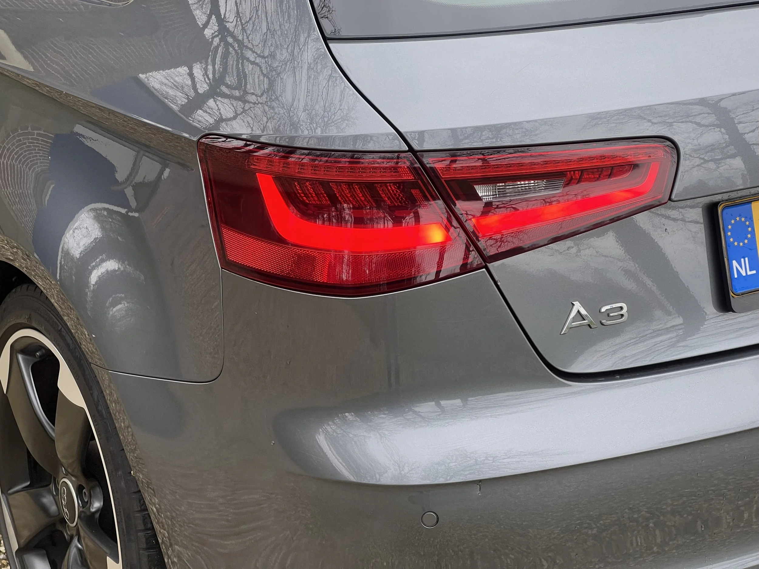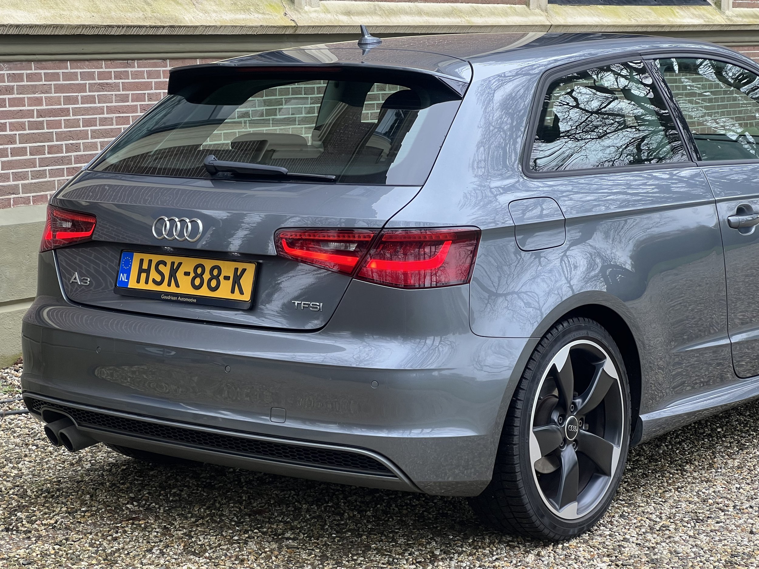 De 3-deurs uitvoering zorgt voor een extra sportieve uitvoering. De lijnen van de auto lopen mooier door en geven de A3 een coupé-achtige uitstraling. De metallic grijze lak en rotor-velgen maken deze auto helemaal af.